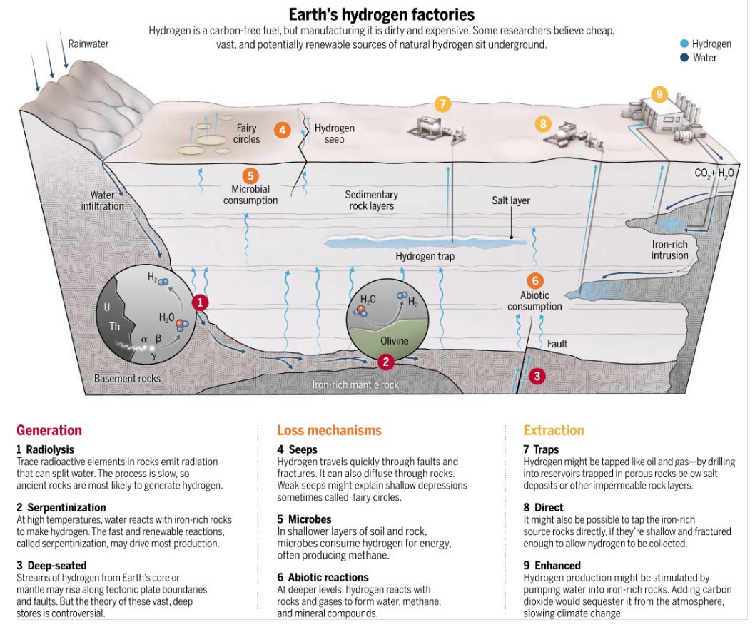 [3] Zgonnik, Viacheslav. "The Occurrence and Geoscience of Natural Hydrogen: A Comprehensive Review." Nature Reviews Earth & Environment, vol. 3, 2022, pp. 393-407, doi:10.1038/s43017-022-00292-1.